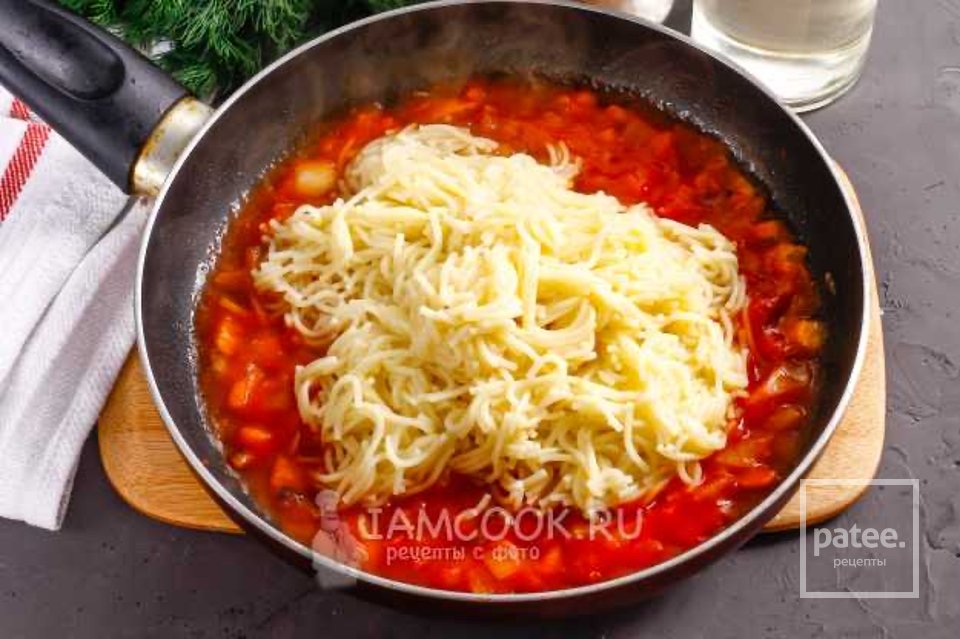 К этому времени вермишель будет готова - слейте отвар из кастрюли.