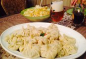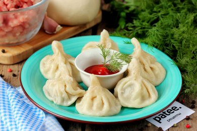 Если Вы еще не знакомы с хинкали, то попробуйте представить: вкусное тесто, которое, словно мешочек, со множеством складочек, вмещает в себя сочную ароматную начинку из мяса и мясного бульона со специями и зеленью.