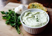 Масло с запеченным в духовке чесноком, петрушкой, тимьяном и орегано.