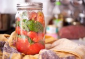 Консервированные помидоры с базиликом, лавровым листом, солью и лимонным соком.