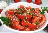 Быстрый рецепт ароматной закуски на основе свежих помидор с острой заправкой приятно удивит своими вкусовыми качествами и обязательно понравится многим!