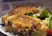 Вкусный, в меру не жирный пирог-закуска. Можно кушать холодным, но я предпочитаю тёплым. Так же в рецепт можете добавить морковь, грибы или что захотите из овощей Вам по вкусу.