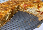 Готовим вкусный открытый французский пирог Киш с курицей, грибами, помидорами и сыром в духовке — прекрасная альтернатива сытным домашним пирогам.