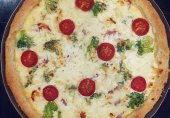 Киш (открытый пирог) с сочной и ароматной начинкой из копчёной куриной грудки, брокколи, помидоров и сыра!