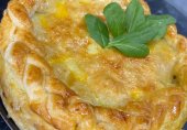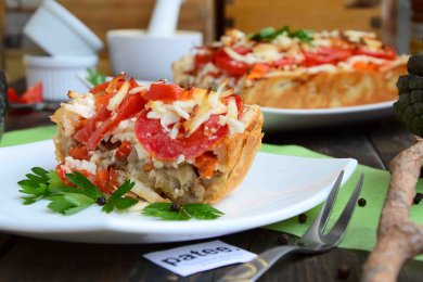 Очень вкусный пирог, единственное, в мледующий раз я сделаю его двухслойным, чтоб было именно пирогом, а не блюдом под слоем теста) если будете делать по рецепту, то 250г теста достаточно.