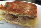 Рецепт приготовления очень вкусного пирога с мясом и картофельным тестом. Пирог очень сочный, сытный и вкусный!