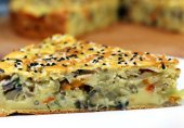 Заливной пирог с луком и грибами