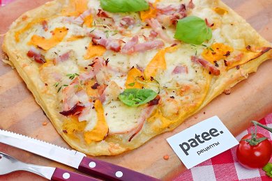Быстрый пирог с тыквой и копченостями из слоеного теста