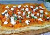 Простой и быстрый пирог из готового слоеного теста. Тыква придаёт сладкий вкус, а сыр Фета солоноватый.