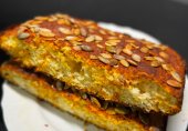 Пирог с тыквой и четырьмя видами сыра из рубленного теста с тыквенными семечками и тимьяном. Это невероятно вкусно - нежнейшее чуть солоноватое тесто с приятным хрустом семечек оттеняется сладкой тыквой, которая впитала в себя ароматы тимьяна.