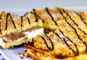 Разровнять и сверху натереть на тёрке второй кусочек теста.