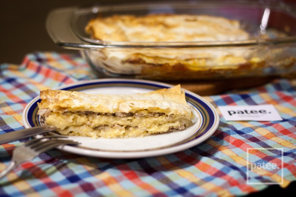 Сырный пирог из лаваша с фаршем