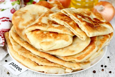 Готовим большие и тонкие жареные пирожки с начинкой из картофеля, лука и шкварок! Пирожки по внешнему виду напоминают лапти, обувь, которая была в обиходе на Руси в старину, такие низкие тапочки с плоской подошвой.