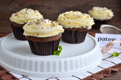 Ванильные кексы с шоколадным заварным кремомНе помню, откуда рецепт, готовила давно)Ингредиенты на 8 капкейков.