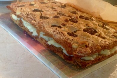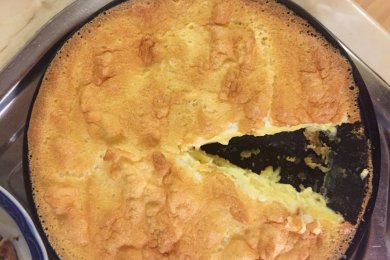 (Тому, кто еще не встречал такого чудо-пирожного, объясню почему оно так назвается.Все ингредиенты смешиваются, получается очень жидкое тесто, но в духовке оно "умным" образом расслаивается на слои: и у вас получается торт с кремом посередине.