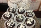 Шоколадные капкейки украшенные шоколадной помадкой и айсингом.