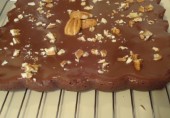 Брауни с орехами (пеканом или другими, по вкусу) и темным шоколадом. Покройте шоколадной глазурью или растопленным шоколадом и посыпьте рублеными орехами.