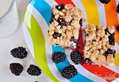 Пирожные с ежевикой и белым шоколадом, посыпанные сладким топпингом.