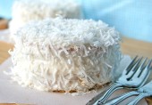 Пирожные с кокосовым экстрактом, покрытые сливочным кремом и кокосовой стружкой.