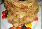 Мягкие и сладкие пирожные из овсяных хлопьев с арахисовым маслом, шоколадными чипсами и драже Эм-энд-Эм’с.