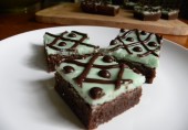 Десерт, от которого будут в восторге и ваши домочадцы, и самые притязательные гости - брауни с мятным кремом, украшенный шоколадным ганашем.