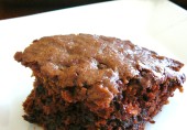 Пирожные брауни из шоколадного теста с тертым кабачком, корицей, гвоздикой и шоколадными чипсами. Можно полить шоколадной глазурью или посыпать сахарной пудрой.