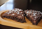 Сладкие и вкусные шоколадные брауни из цельнозерновой муки с кленовым сиропом и большим количеством рубленых грецких орехов.