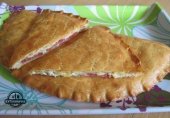 Кальцоне с колбасой, луком и сыром
