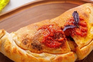 Своеобразная закрытая пицца «Кальцоне» («штаны»), сохраняющая внутри все свои ароматы, насладиться которыми можно, лишь раскрыв начиненное фаршем тесто.