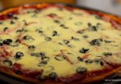Очень вкусная пицца на тонком тесте из цельнозерновой муки.