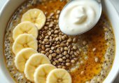 готовИмРекомендую покупать овсянку мелкого помола, они вкуснее намного.1.Смешиваем все ингредиенты для каши и отправляем฿микроволновку на 4 минуты.