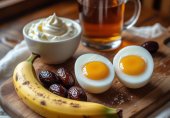 Завтрак 🍳. Варёные яйца вкрутую с домашней сметаной / или греческим йогуртом / или с любым другим соусом + чай / напиток из какао и молока.