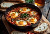 Завтрак 🍳. В шакшуке яйца помещаются поверх соуса и готовятся целыми, сохраняя жидкий желток. Шакшука готовится с более сложным и ароматным соусом из томатов, перца и лука, приправленным смесью специй, включая тмин и паприку.