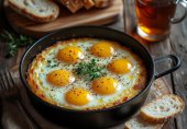 Завтрак 🍳. Яйца, приготовленные в домашней сметане с манной крупой.