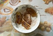 Молочная рисовая каша с яблоками и изюмом в мультиварке