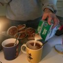 1.Молоко смешать с водой и поставить в кастрюльке на огонь.
