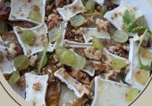 Слоеный салат с курицей, черносливом, огурцом и обжаренными орехамиЯ редко ем майонез, делала со сметаной.