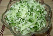 ПРИГОТОВЛЕНИЕ:Куриное филе отварить, остудить, разобрать на волокна. Свежую капусту тонко нашинковать, слегка помять.