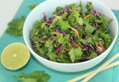 Легкий салат из зелени под изысканным ореховым соусом по рецепту китайской кухни.