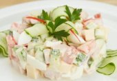 Салаты с крабовыми палочками, как правило, заправляют майонезом. Но разнообразия ради, попробуйте приготовить такой салат с любым растительным маслом.