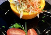 Простейший рецепт капустного салата в освежающем апельсиновом маринаде понравится и детям и взрослым благодаря нежному вкусу и оригинальной подаче.