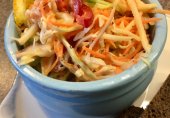Многие знают, что традиционный американский салат коулслоу состоит из капусты, моркови и пикантной йогуртовой заправкой с горчицей.