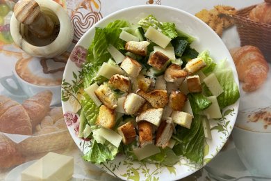 Салат «Цезарь» с курицей был назван не в честь римского полководца, как многие могут подумать, а в честь Цезаря Кардини — известного ресторатора, который и придумал рецепт этого чудо салата.