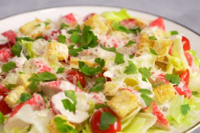 Хрустящий салат и ароматная заправка с сыром "Пармезан" – мы объединили простые ингредиенты в этом вкуснейшем блюде.
