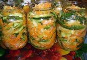Очень люблю консервировать, много и разных салатов, этот рецепт один из самых любимых. Он красочный, в меру острый и напоминает мне о лете.