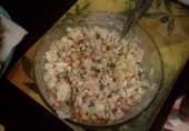 Пикантный, очень сытный салат. Сочный,с свежими нотками. Ингредиенты настолько дополняют друг друга, что не сразу поймёшь что в него входит.