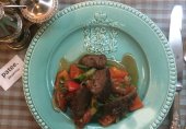 Тёплый салат с бараньей печенью и бальзамической заправкой.