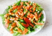 Легкий салат с лососем или любой другой красной мало соленой рыбой! Как обычно салат в духе правильного питания и низкокалорийной пищи!