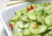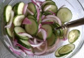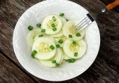 Вкусный летний салат из огурца с луком, заправленный рисовым уксусом.