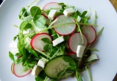 Излюбленный всеми салат из ранних овощей, очень популярный именно в весеннее время года! Такой салат, с редисом и свежим огурцом, отлично подходит к мясным блюдам, печёному картофелю, плову.